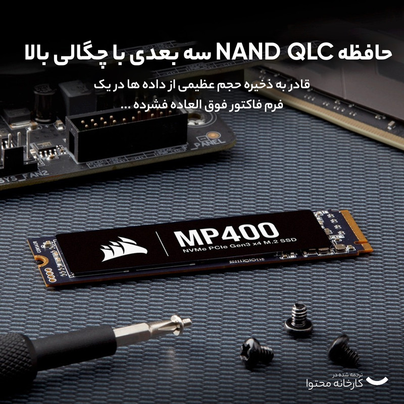 حافظه اس اس دی برند کورسیر مدل MP400 دارای ظرفیت 2 ترابایت می باشد. فرم فکتور این حافظه اس اس دی NVMe PCIe M.2 می باشد. سرعت خواندن اطلاعات در این حافظه تا 3480 مگابایت بر ثانیه و سرعت نوستن آن تا 3000 مگابایت در ثانیه می باشد.