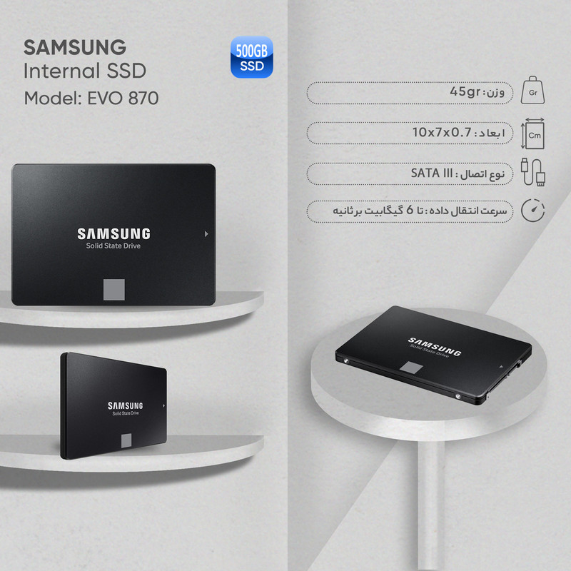 نگهداری اطلاعات دیجیتال همواره یکی از موضوعاتی است که امروزه همگی ما با آن درگیر هستیم به همین خاطر لازم است تا همیشه یک وسیله مانند هارد، رم یا فلش مموری همراه خود داشته باشیم تا اطلاعات مورد نظر خود را جابهجا کنیم. به همین دلیل است که در سالهای اخیر استفاده از حافظههای جامد اس اس دی اینترنال در کامپیوترها بسیار داغ شده است. حافظههای اس اس دی دارای قطعات ثابتی هستند که از چندین منظر کار کاربران را برای استفاده و حملونقل راحت میکند. اس اس دی اینترنال مدل EVO 870 با ظرفیت 500 گیگابایت محصولی از شرکت خوشنام سامسونگ است که در برابر لرزش مقاومت زیادی دارد و به این راحتیها خراب نمیشود. به همین دلیل میانگین عمر این محصول 1.5 میلیون ساعت است که تقریباً باید آن را بینظیر خطاب کرد. همچنین این حافظه که 500 گیگابایت ظرفیت دارد، دارای وزن 45 کیلوگرم بوده و از طریق رابط SATA 2.5 به دستگاه شما متصل میشود.